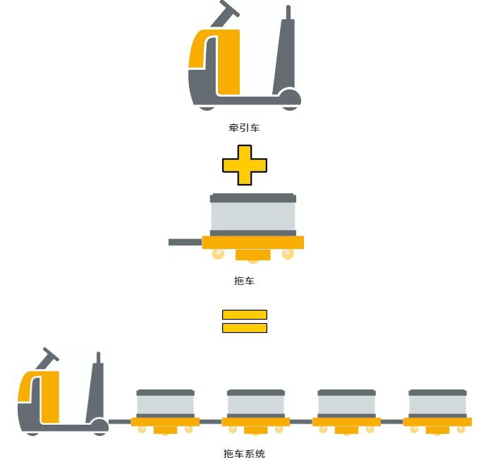 拖车系统=牵引车+拖车。这样的“黄金组合”在进行物料供应时占尽了优势。