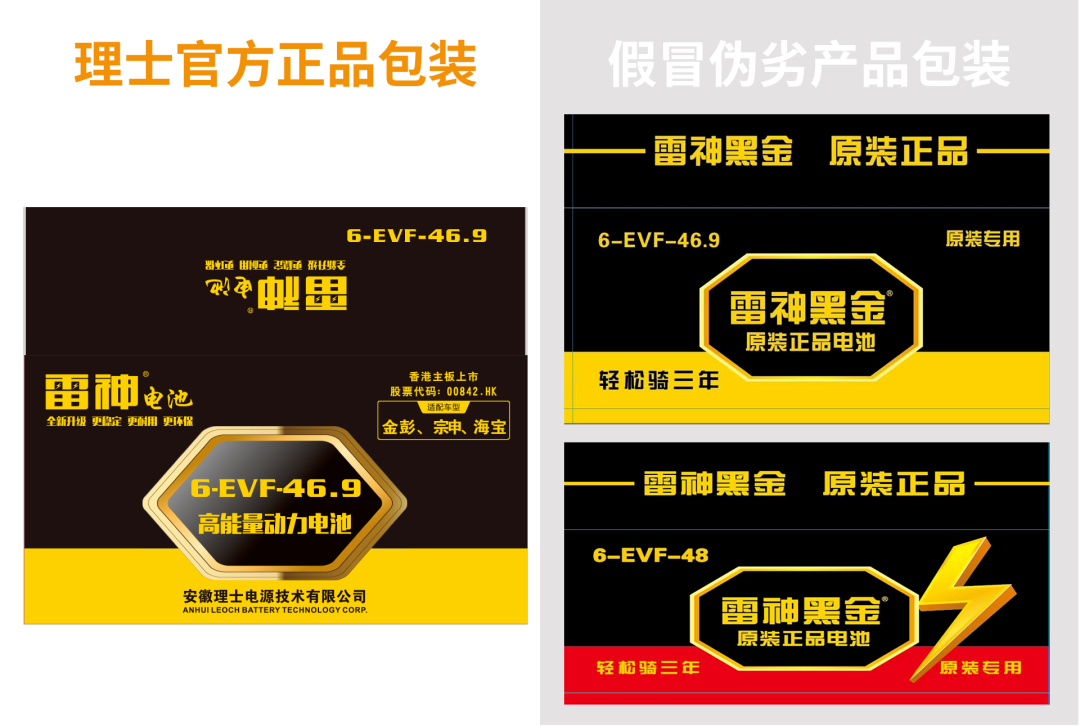 “315”虽然已过去,打假却成为常态。近段时间,理士公司收到众多消费者举报,市面上存在冒牌货,它们通过碰瓷理士雷神电池的形式,注册雷神黑金的商标,模仿理士雷神电池的包装,打着理士高品质电池的幌子,售卖山寨电池。对于这种破坏行业规则、严重损害理士电池形象与信誉、欺诈消费者的行为,理士公司绝不姑息!理士公司将采取法律途径依法维护广大客户的权益,维权到底!