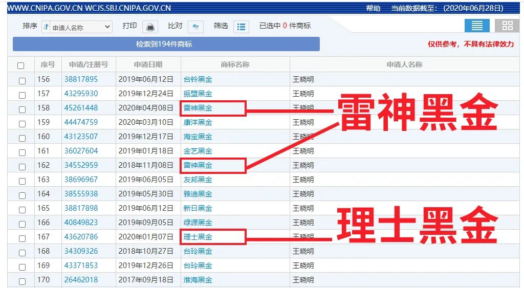 一、侵犯理士公司商标权。阜宁县阜城曙炜电动车门市于2019年7月28日在仍代理理士雷神电池的情况下,协助其亲属恶意注册了“雷神黑金”电池商标。据中国商标网显示其还注册了台铃黑金、淮海黑金等品牌,企图通过傍名牌的方式达到其不可告人的目的。目前,理士公司已经向国家知识产权局商标局提出申诉(申请号:20200000010961),目前正在处理中。同时,我们也呼吁有相同遭遇的厂家拿起法律武器维护自己的合法权益!