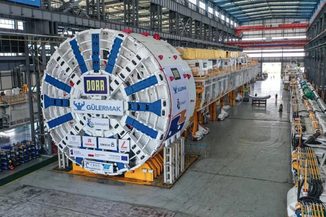 “中铁797号”泥水平衡盾构机已于6月17日在中铁装备顺德基地正式下线,刀盘直径13.46米,整机总长约105米,总重量超过2700吨。据悉,该设备将用于波兰希维诺乌伊希切(Świnoujście)隧道建设,是中国出口欧洲的首台超大直径泥水平衡盾构机。
