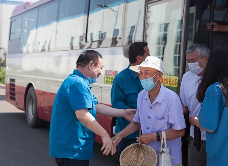 上午10时左右,一辆满载退休职工的班车缓缓驶入火炬园区,李玉柱、孙俊杰等领导前来迎接并逐一握手欢迎。