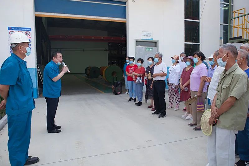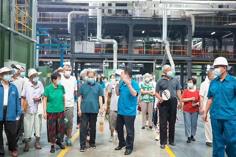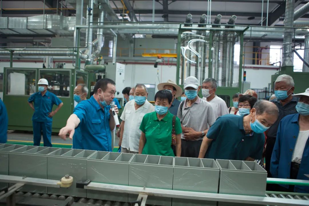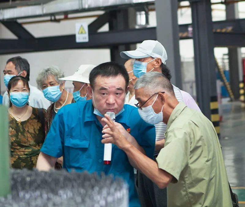在102#厂房西门,李玉柱致简短欢迎辞,对退休老同志、老领导们的到来表示热烈欢迎,对他们为火炬发展做出的贡献、给予的支持表示感谢,并带领大家逐工序参观了102#厂房和其他建设项目,详细讲解了各条生产线采用的新设备、新技术、新工艺;希望退休老同志老领导能够在公司后续发展中,一如既往支持、多提宝贵意见,助力火炬更好更快发展。