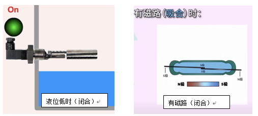 此车液位传感器采用的是磁性液位开关,其工作原理是:通过磁铁来感应的开关装置,开关是干式舌簧管,浮球内置软磁簧片,是一种有触点的开关电子元件;液位的上升或下降会带动浮球一起移动,从而使该干簧管产生吸合或者断开的动作,并输出一个开关信号。(请参阅以下冷却液液位感应器工作原理)