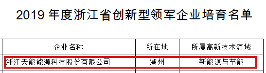 3月14日,浙江省科学技术厅公布2019年度浙江省创新型领军企业名单。天能帅福得能源股份有限公司(原:浙江天能能源科技股份有限公司),凭借在新能源与节能领域的突出表现纳入培育名单,这是继去年动力能源公司被认定为浙江省创新型领军企业后,天能又一家上榜的子公司。