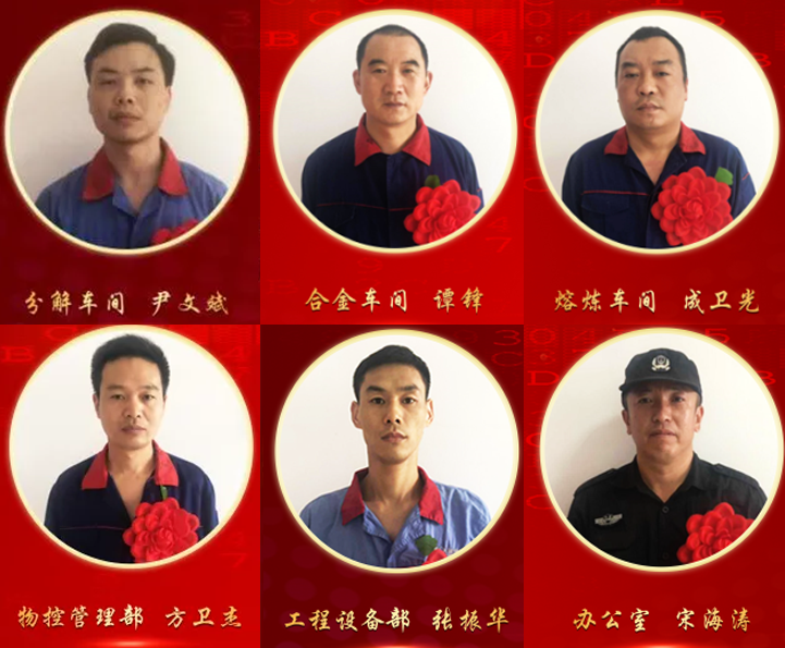 ❂【资源循环事业部】为积极践行天能核心价值观,在公司范围内营造向标杆看齐,向榜样学习的浓厚气氛,电源材料公司开展“月度标兵”评选活动,尹文斌、成卫光、方卫杰、张振华、谭锋、宋海涛入选6月“月度标兵”。