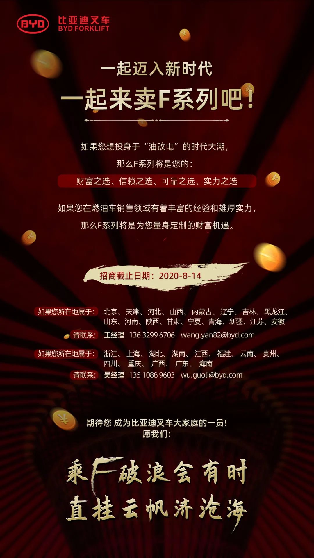 千呼万唤,比亚迪F系列叉车开启全国盛大招商!