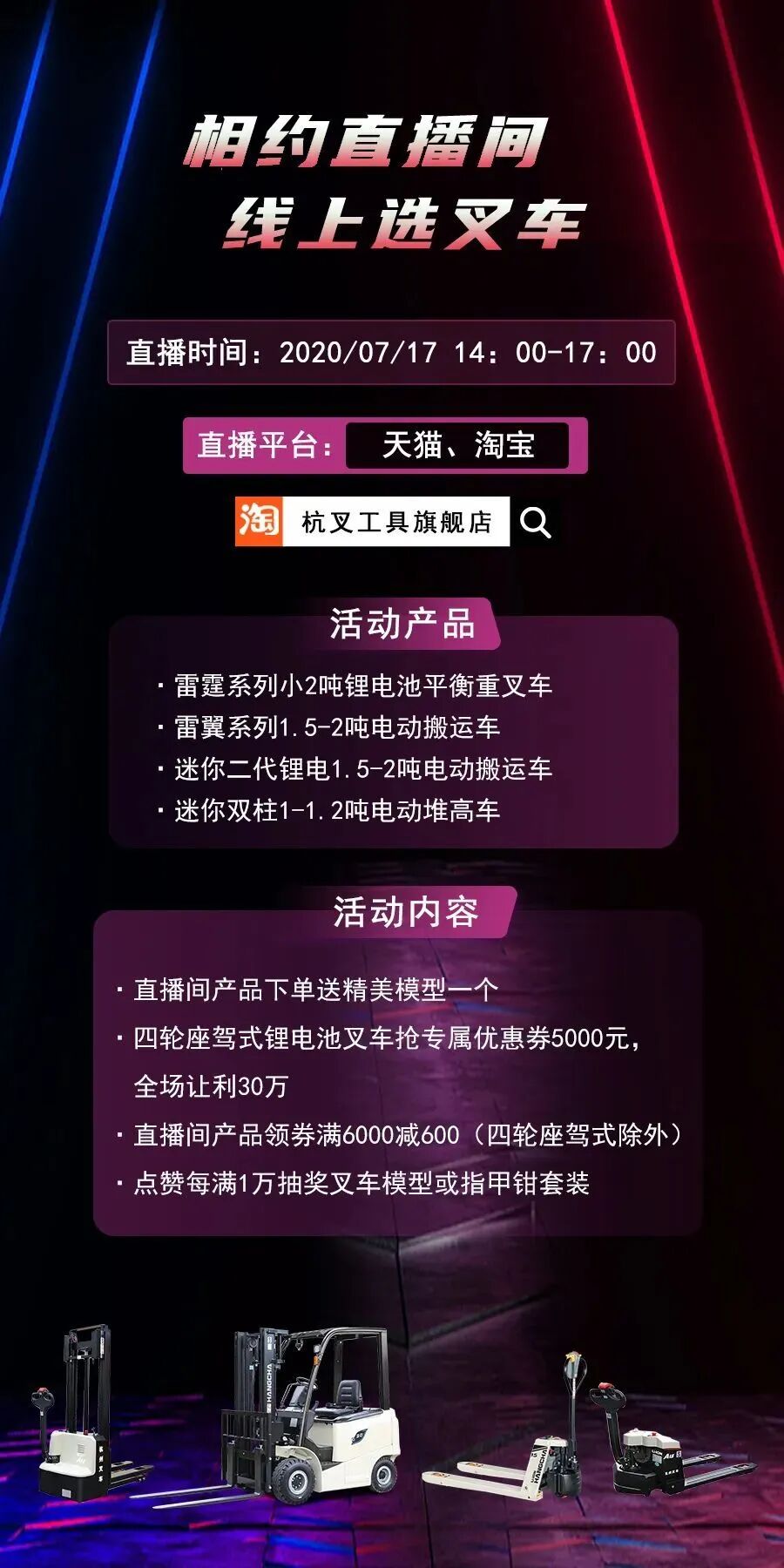 万钧『雷霆』,点燃新能源引擎——杭叉天猫直播间抢单立减5000元!