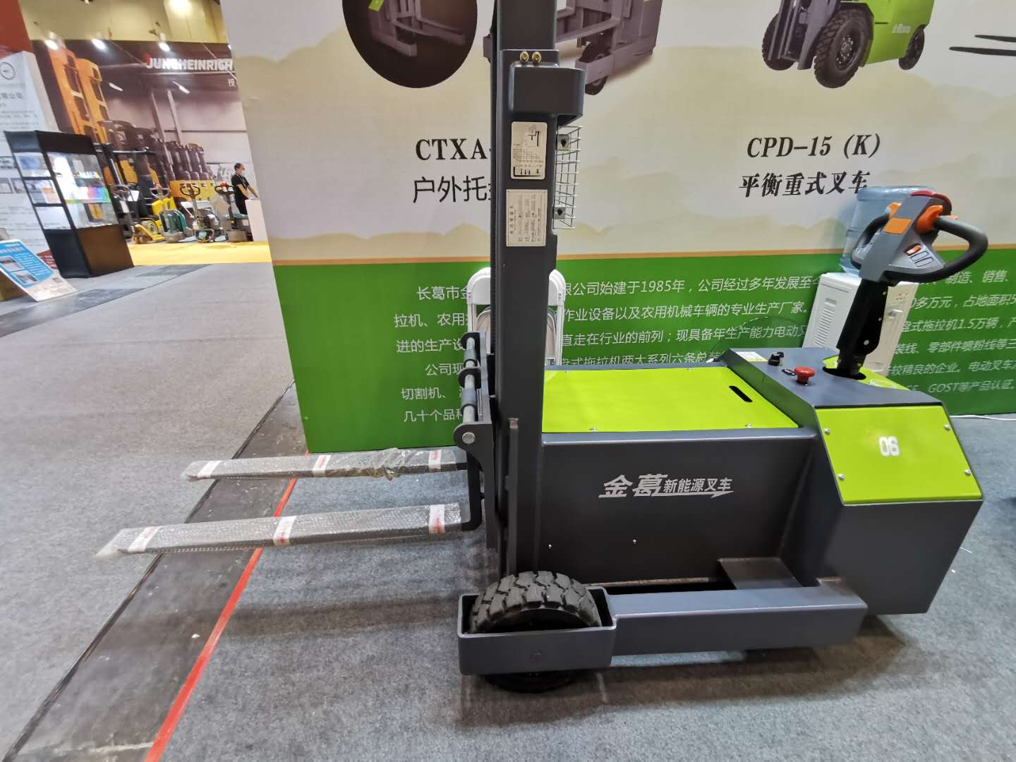 金葛新品1.5-2吨的户外越野托盘车配备了永磁无刷驱动电机,1.5kw的大扭矩驱动电机从而提供更大扭矩和充足动力。配备实心橡胶轮胎并且与地面间隙高度保持110mm的距离。同时,叉腿可以进行调节,390mm的起升高度,满足多种工况需求。