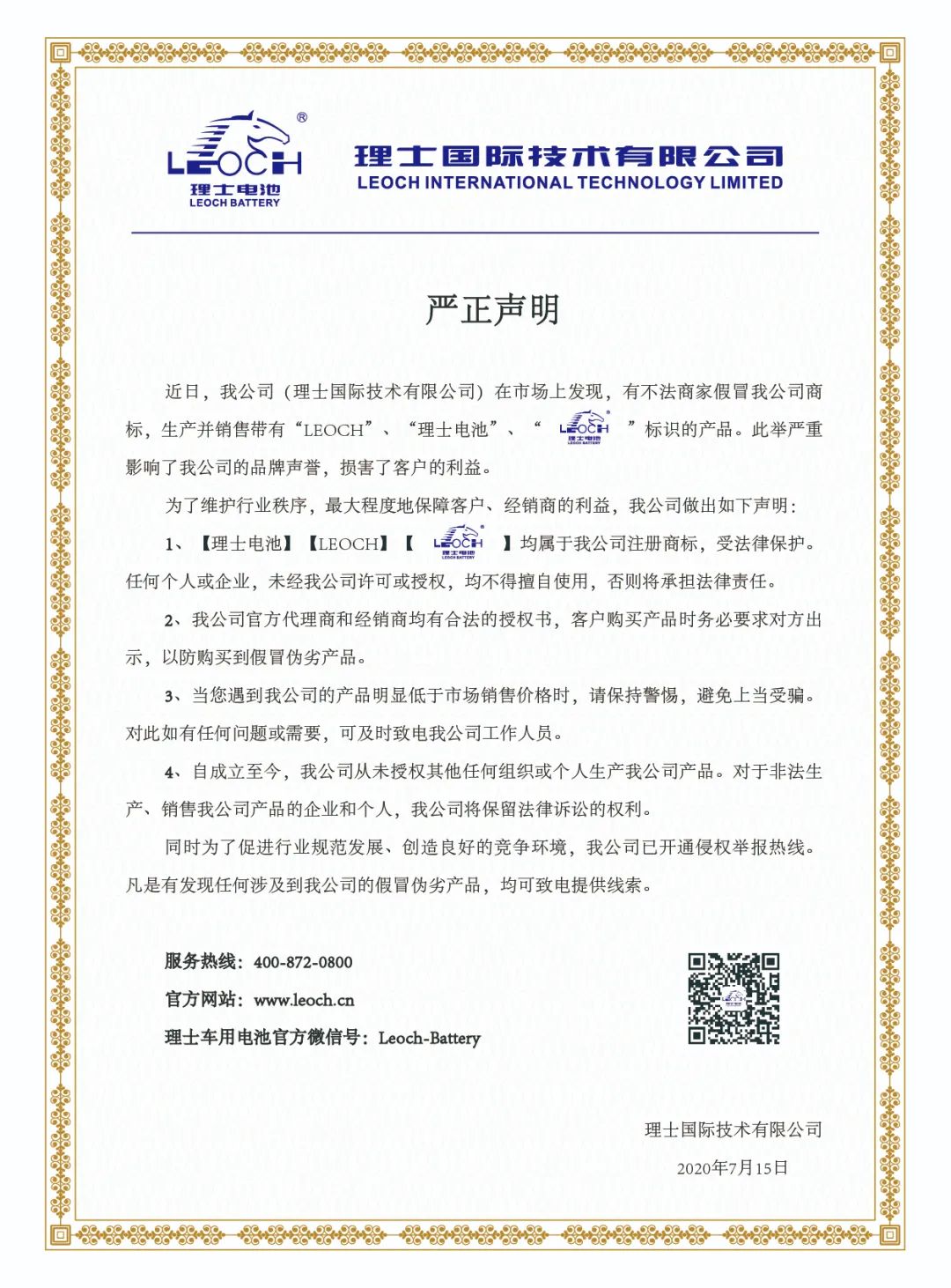 对于市场上出现的不法商家采用非法手段假冒理士电池产品进行售卖的行为,理士国际表示强烈地谴责,必要时会采取法律手段追究其相应的法律责任。望大家共同监督,一起守护蓄电池行业健康发展。