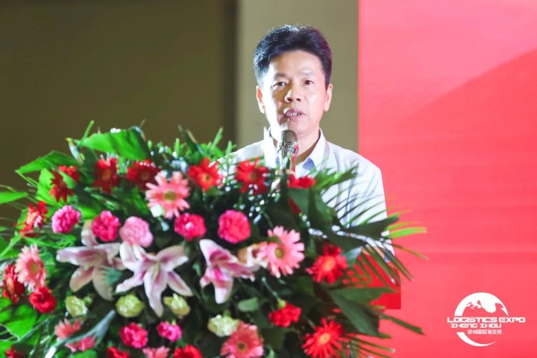 (自左到右依次为:郑州市物流口岸局党组成员、副局长张毅、河南省物流与采购联合会秘书长李鹏、河南省制冷学会秘书长隋继学、郑州海名汇博会展策划有限公司总经理肖奎先在开幕式发表致辞)