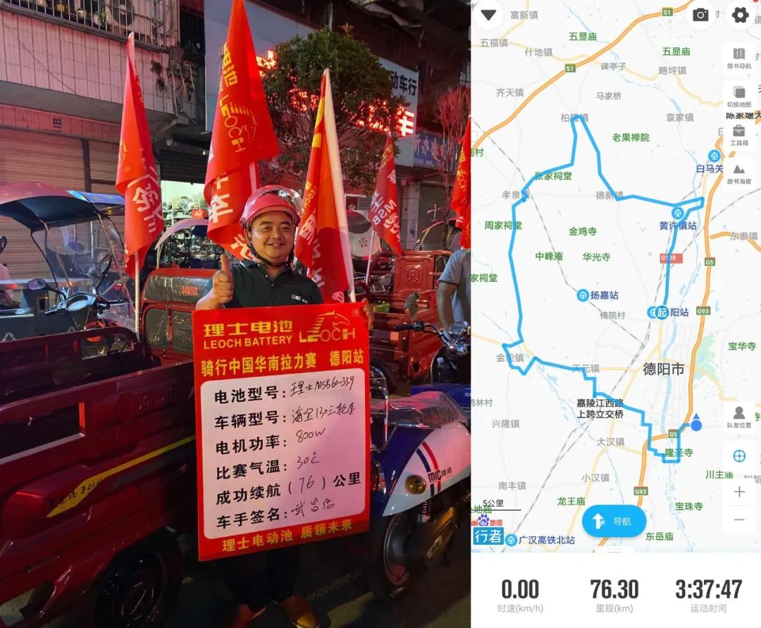 最后,搭配MSB60-33.9型号电池的海宝800w三轮车,成功续航76公里。