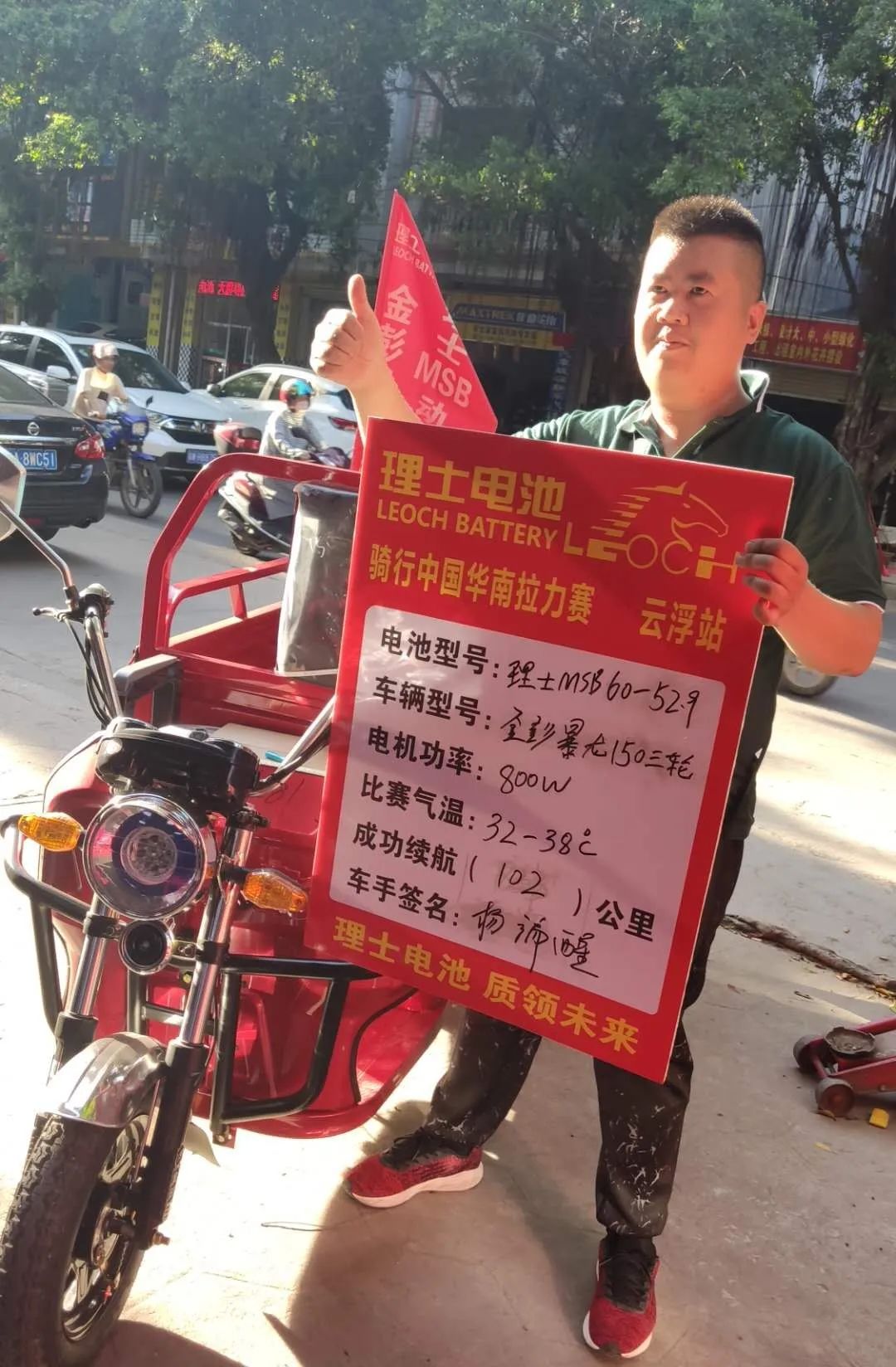 搭配MSB60-52.9型号电池的金彭800w三轮车,成功续航102公里。