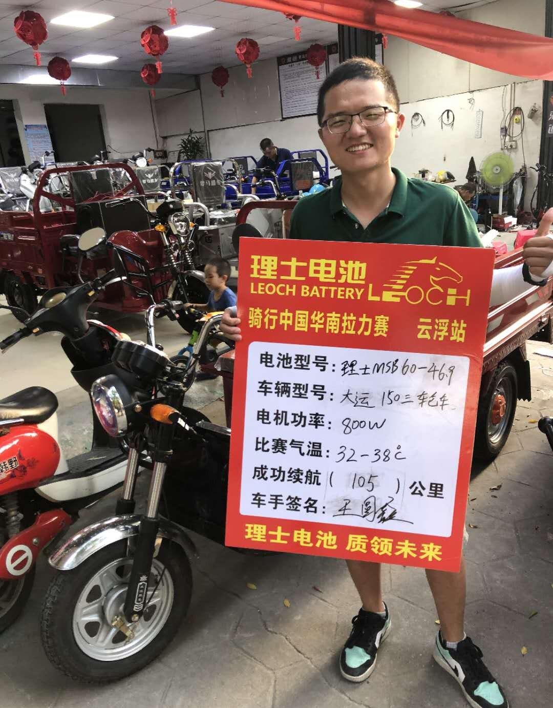 搭配MSB60-33.9型号电池的大运800w三轮车,成功续航86公里。