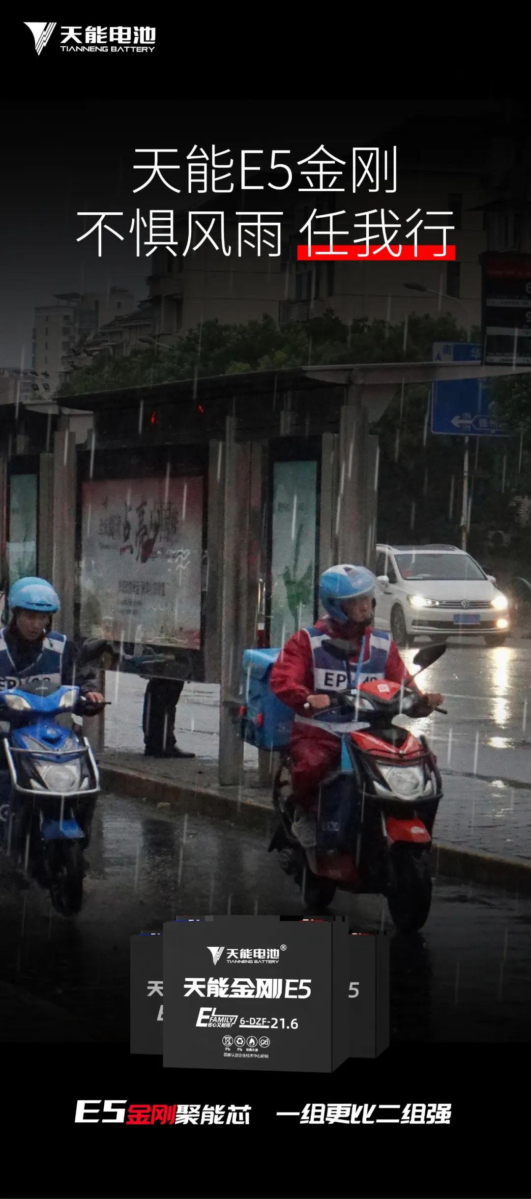 根据市场需求,天能电池潜心科研,研发出了具备“超动力”“超耐力”“超寿命”三超特点的E5金刚电池。