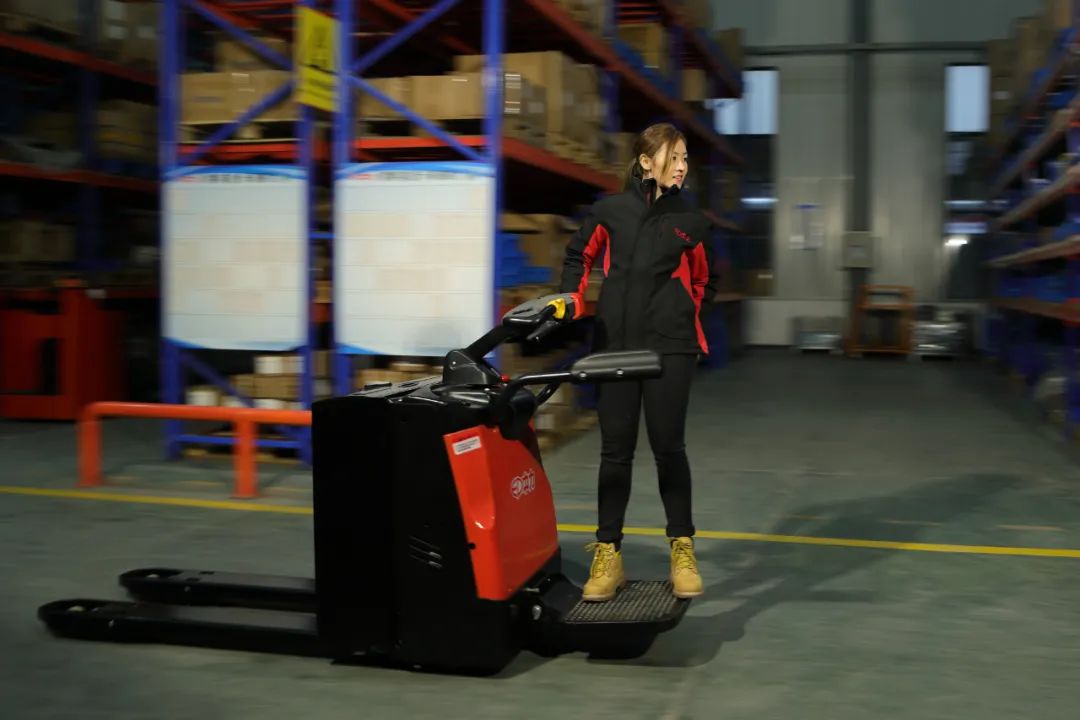 如果货物运输路程远,重量超过1.5吨,中力专为物流行业设计的高强度踏板式搬运车,采用进口电机,动力强劲,续航时间长,踏板配备减震功能,可有效保护操作人员的腿部关节。另外车辆还配备防撞护臂,操作人员在作业时可进行依靠,长时间作业情况下可缓解驾驶疲劳。