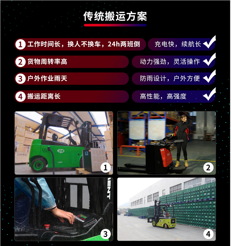 2.搬运距离长,经常跨厂房作业,车辆性能要求高;