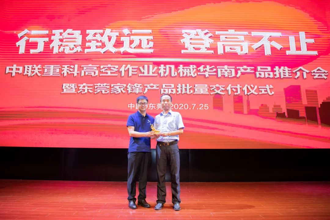 东莞家锋总经理谭忠表示,自2019年以来,东莞家锋正式加入中联重科客户联盟生态圈,对于中联重科的产品和服务十分信赖。通过合作的不断深化,双方将站在“218”的新起点上,深耕高机行业,向着更高的台阶和目标迈进。