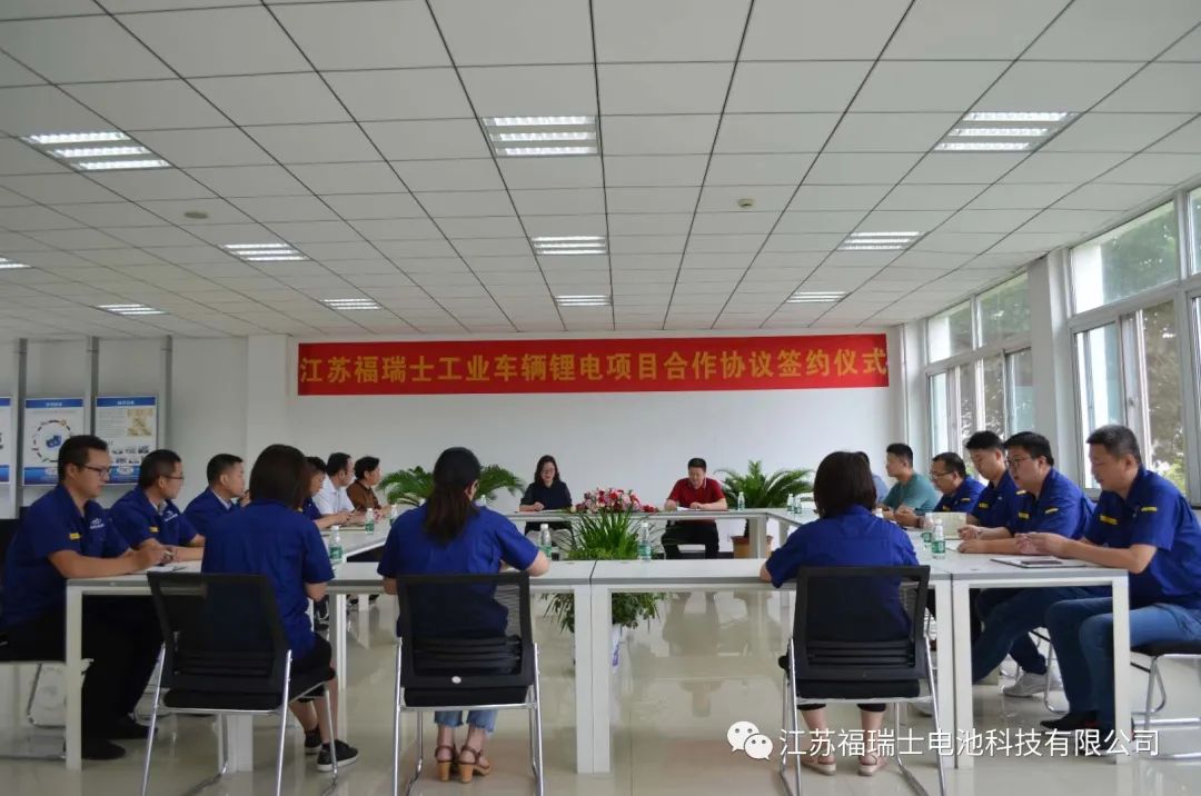 2020年7月30日上午,江苏福瑞士工业车辆锂电项目合作协议签约仪式,在江苏福瑞士新能源有限公司一楼会议室隆重举行。参加本次签约仪式的领导有:江苏福瑞士电池科技有限公司副董事长兼总经理姚红岩女士、安徽众烁新能源科技股份有限公司陆董事长和团队成员以及江苏福瑞士团队核心成员。