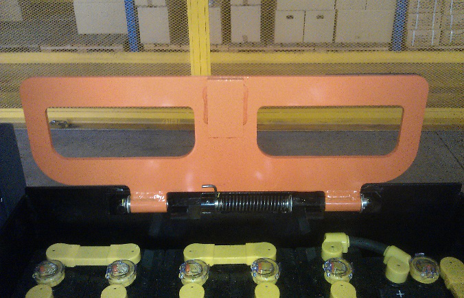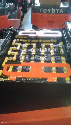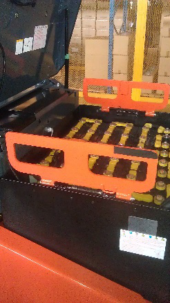 在电瓶箱两侧的位置焊接吊耳,更方便从上方叉取和更换电瓶。