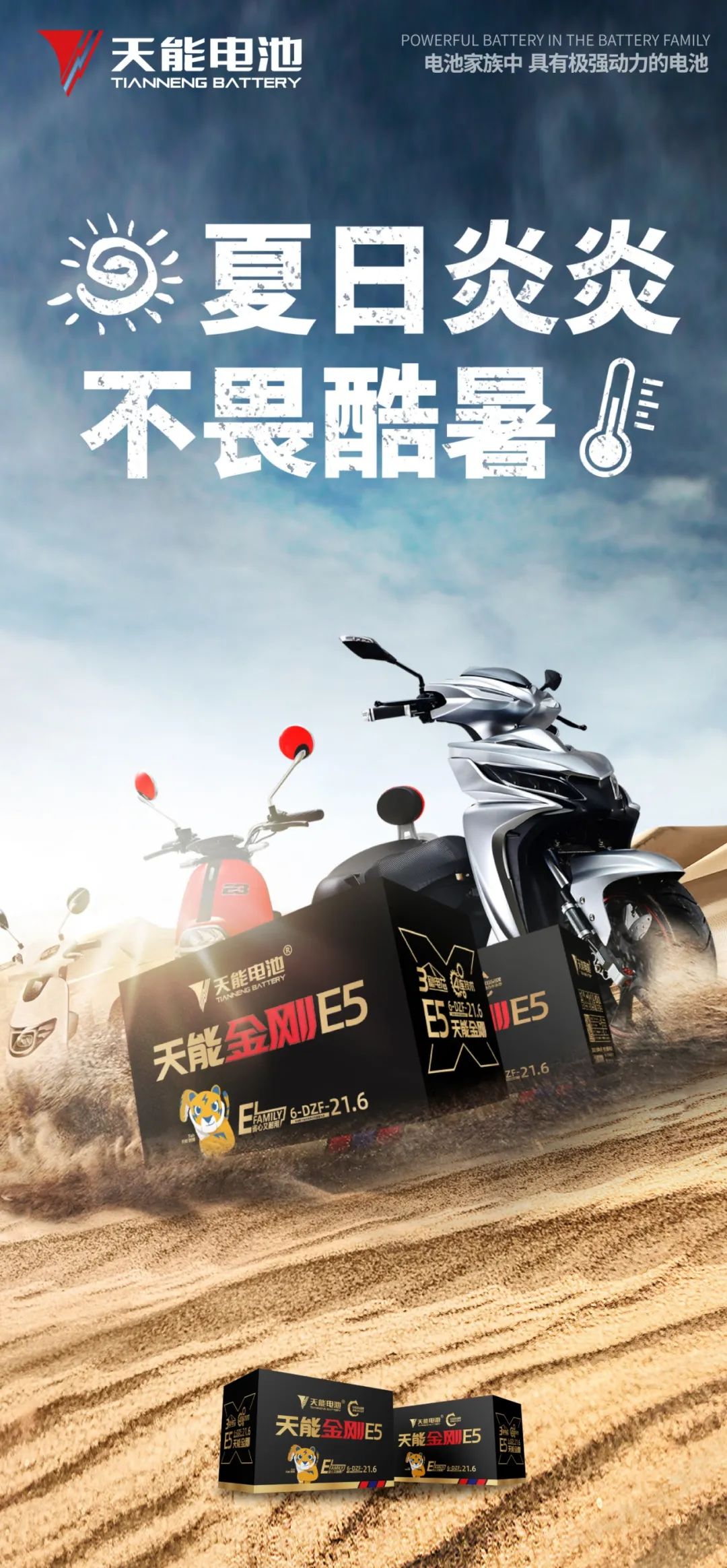 天能E5金刚,采用全新四连技术、三稳电芯技术。增强合金耐腐蚀性能和一致性,大幅降低电池组单只落后比例,提升电池高功率下的使用寿命50%。不畏酷暑,不怕没电。