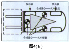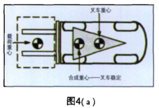 为了保持叉车的稳定,重心必须位于稳定三角形内,否则即为不稳定。当重心移动到驱动轴前面,则发生向前倾翻;当重心移动到两前轮中心和转向支点连线的外侧时,则发生侧翻。