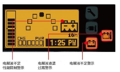 当液温和液位感知器感知电解液不足或液温过高等异常时,会通过显示器警示,并限制车辆性能,降低对电瓶的损伤,帮助确保电瓶始终处于最佳工作状态,延长使用寿命。