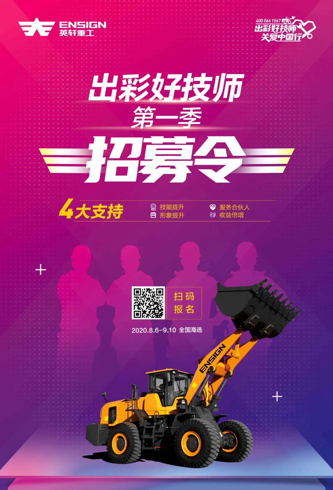 线上报名时间还剩3天全国招募令这个夏秋季,我们来了英轩重工---出彩好技师,关爱中国行一支服务招募令,英雄豪杰争朝夕技能比拼 擂台争霸英轩提供服务大擂台只...