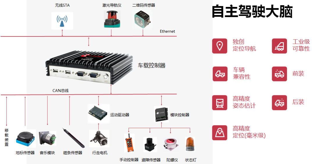 负责接收各路传感器信号,实现叉车的自主决策、高精度的定位与姿态估计、高效的路径规划和重规划、精准的运动控制和动作执行。