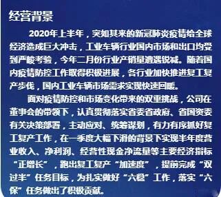 【重磅】安徽合力2020年半年度报告新鲜出炉!