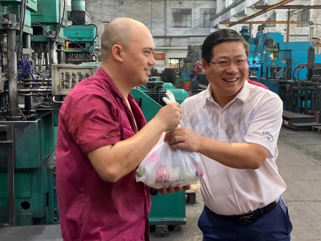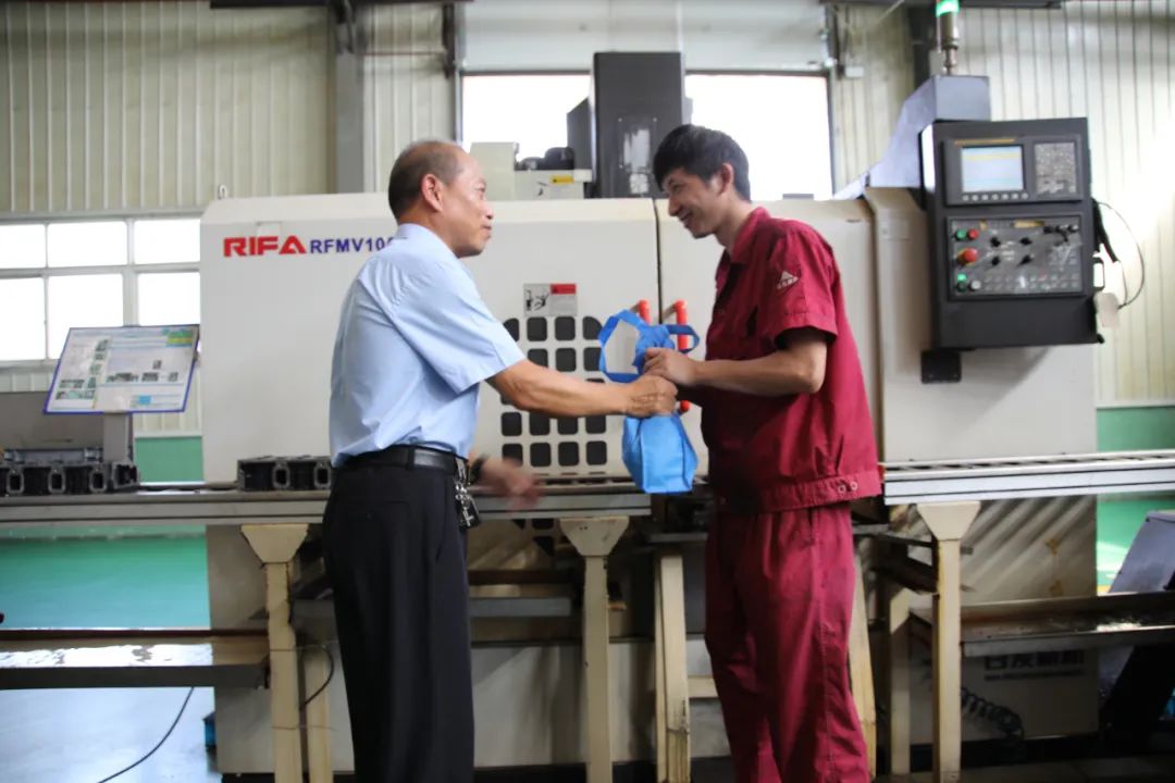 持续的高温天气,每日的高产给生产一线的员工们带来严峻“烤”验。公司广大职工抗高温,战酷暑,依然坚守在工作岗位上。近日新昌县总工会副主席潘国平、经保部长黄杏燕等一行在行政总监石荣的陪同下来到生产车间慰问一线员工;公司白洪法董事长和各条线总监一行也分别到公司生产现场,慰问在酷暑中坚守岗位、辛勤劳动的一线职工,表达了对职工真挚的问候和关心。