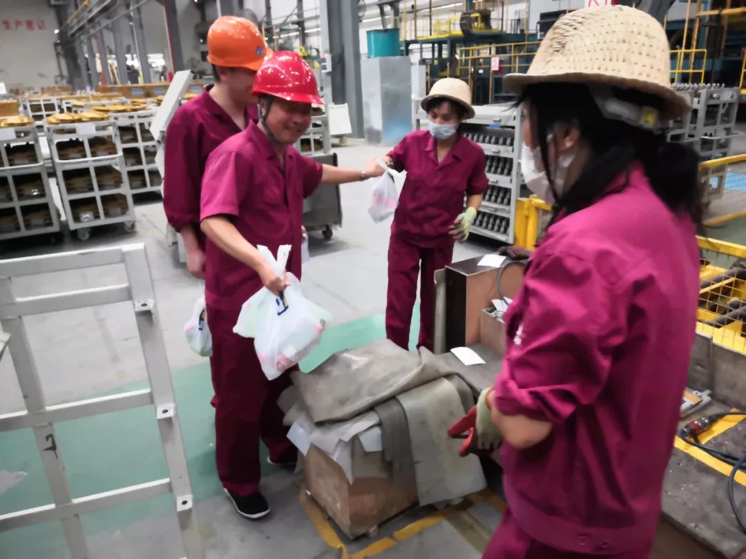 虽然热浪扑面,但生产现场井然有序,员工们忙碌地工作,慰问的领导们走近员工生产岗位,向奋战在岗位上的职工与劳务作业人员表示了慰问与感谢,并贴心地送上毛巾、矿泉水等解暑降温用品,叮嘱员工在当前持续高温的不利条件下,做好生产安全工作,同时注意防暑,劳逸结合,对大家坚守岗位、辛勤工作,有力保证公司生产经营目标顺利进行表示衷心的感谢。