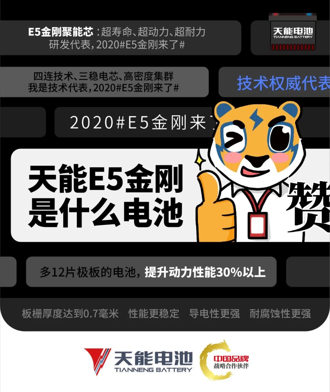天能E5金刚电池是电动轻便摩托车、电动摩托车领域当前唯一的高功率电池,采用了比普通电池多12片极板的高密度极群技术,保证了电池的大功率放电性能比其他电池更好、更稳定,电动车爬坡不费劲、速度更快!