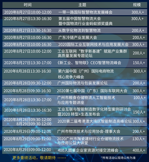 2020年汉诺威LET中国广州物流展将同期举办10余场论坛和会议,邀请行业专家给出权威解读和分享,联结物流前沿资讯,在交流中帮您开阔思路、找准方向。