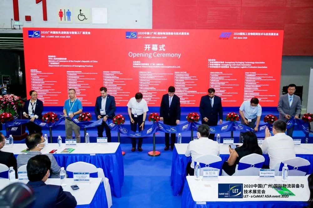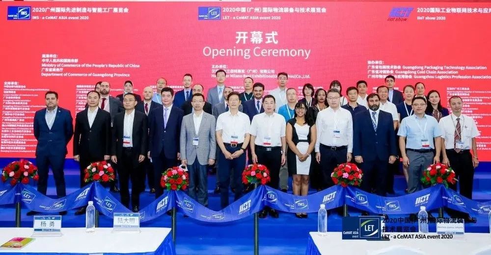 在上午举行的开幕式上,广州市人民政府副秘书长高裕跃、广州市海珠区政府副区长孙伟、广东省商务厅服贸处三级调研员何威、广州市工业和信息化局生产服务业处总工程师胡志刚、广州市商务局副局长魏敏、广州市海珠区科技工业商务和信息化局副局长钱宇、广州商务会展促进服务中心副主任陈建莎、古巴共和国驻广州总领事馆总领事Denisse Llamos Infante、以色列驻广州总领事馆总领事Peleg Lewi、卡塔尔国驻广州总领事馆副总领事 FAHAD ABDULLA A.S.AL-FADALA、塞内加尔驻广州总领事馆副领事Rougui MBAYE、墨西哥驻广州总领事馆商务领事Daniel Dominguez Cantu、葡萄牙共和国驻广州总领事馆经济与贸易处副总领事Mário da Silva Ferreira、马来西亚驻广州总领事馆商务领事Zaimah Osman 、伊朗伊斯兰共和国驻广州总领事馆商务领事Reza Saeidi、厄瓜多尔共和国驻广州总领事馆商务领事Paul Penaherrera、巴基斯坦驻广州总领事馆商务处商务参赞 Muhammad Irfan、新加坡企业发展局主任 Howard Tong、中国机械工程学会副理事长兼秘书长陆大明、中国国际贸易促进委员会广州市委员会党组书记主任杨勇、中国仓储与配送协会秘书长郭雷潮、中国物流与采购联合会物流装备专业委员会秘书长左新宇、中国信息通信研究院广州分院副院长王洪岭 、广东省包装技术协会常务副会长兼秘书长朱智伟、东莞市厚街镇会展办主席方活力、东莞市厚街镇会展办主任陈骥烈 、东莞市厚街镇会展办副主任梁桂森、广州市物流技术与应用协会当席会长刘耀军、汉诺威米兰佰特展览(广州)有限公司董事长刘国良 、广州市物流技术与应用协会秘书长 / 汉诺威米兰佰特展览(广州)有限公司董事总经理 / 广州市巴斯特会展有限公司董事长陈琳出席并致词剪彩。德国汉诺威展览公司工业和物流新展开发全球总监Krister Sandvoss专程发来视频致辞。出席活动的还有来自政府各部门、各行业协会及各国驻广州总领事馆官员等近200位海内外嘉宾。