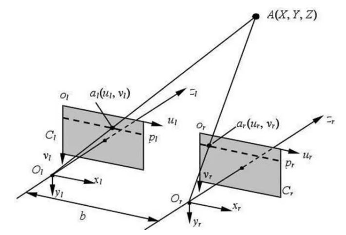 双目视觉的基本原理是利用两个平行的摄像头进行拍摄,然后根据两幅图像之间的差异,利用一系列复杂的算法计算出特定点的距离,当数据足够时还能生成深度图。