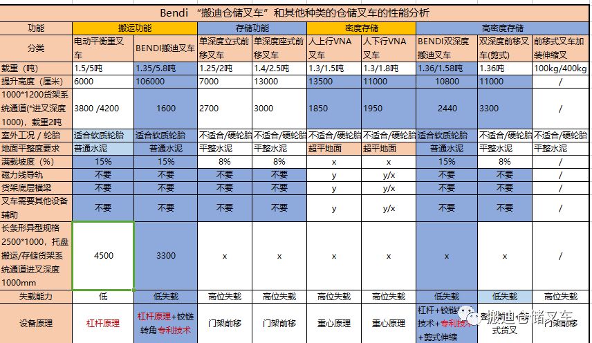 7、Bendi产品与其他种类的仓储叉车的应用能力分析:
