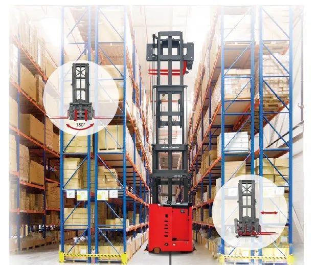 (视频建议WIFI网络收看)米玛三向堆垛车因其独特的货叉180°旋转、左右侧移堆垛受到广大客户的喜爱,米玛三向叉车的使用大大实现了高货位仓储,库容量提升,劳...