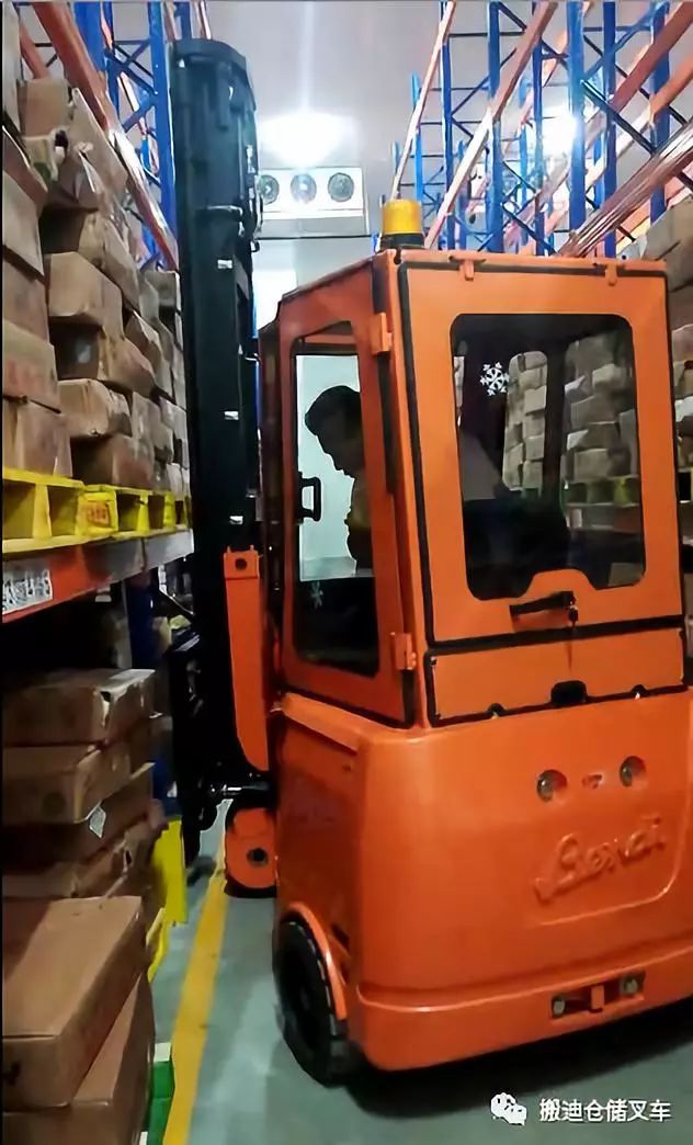 9.1搬迪窄巷道叉车作为“空间应用大师”的特质:1.8米作业通道,低温冷库密度存储,提高有限空间的存储率,节约运营电费35% !