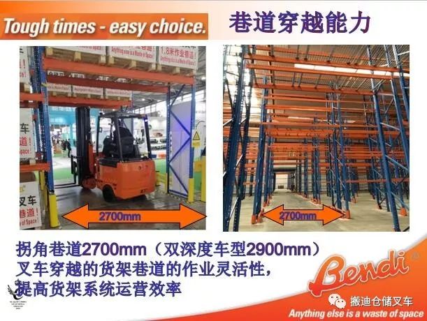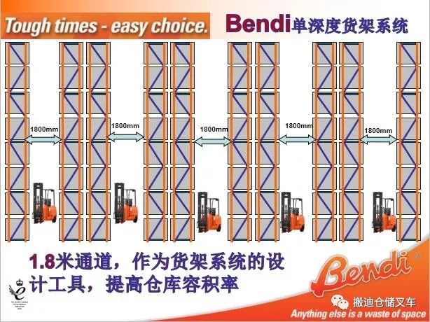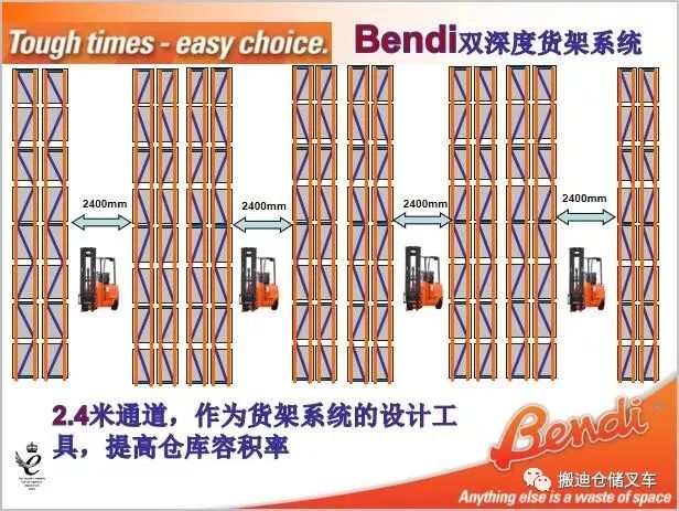 Bendi无限制窄巷道叉车 单深度的货架布局:
