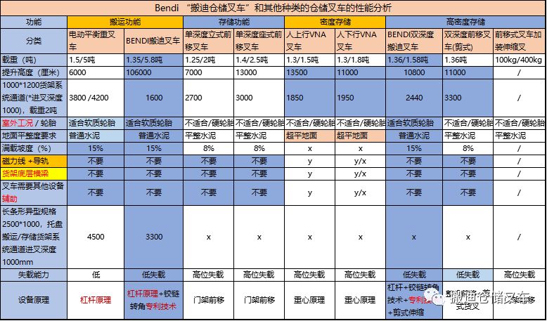 ◆◆Bendi摆头车与前移式叉车、平衡重叉车的通道能力数据分析:
