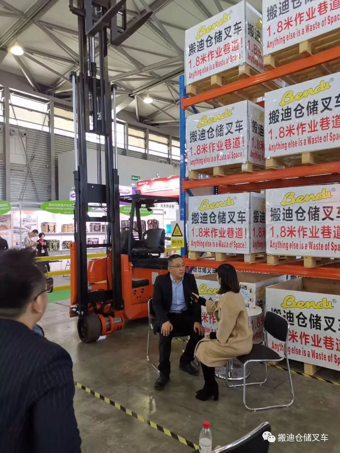 Bendi中国总部在会展期间接受了中央电视台“匠心节目组”的采访,搬迪铰链式叉车的用户应用价值中“有限仓储空间极致存储,提高土地资源利用率”这一理念得到央视匠心节目组的好评。