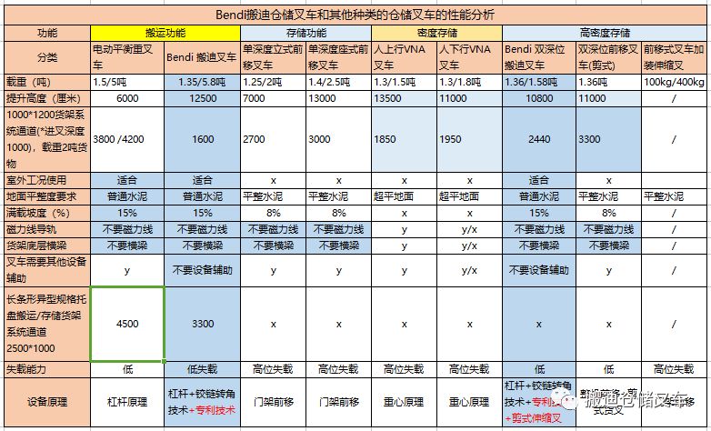 *总结:无论是平衡式叉车、前移式叉车、VNA叉车,摆头车仿品,实现Bendi的设备功能,都存在一种不足,比如:通道能力,作业速度,工况适应能力,举升能力,载重能力,货架系统穿越巷道能力等。