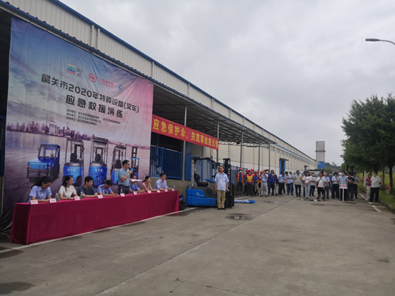 演练结束后,韶关市市场监督管理局特种设备安全监察科黄艺荣科长对此次演练作了总结点评,对演练活动给予充分肯定,整个演练过程组织严密,措施得当,行动快捷,配合默契,各个环节衔接紧凑,达到预期的演练效果,起到提升应急救援能力的作用;他指出应急救援工作提三点建议:一是提高政治站位,坚守安全生产红线;二是做好经验总结,不断提高应急救援水平;三是以预防为先,做好日常安全管理。事后控制不如事中控制,事中控制不如事前控制, 切实加强安全生产管理,落实安全主体责任,不断提高应急管理工作水平。