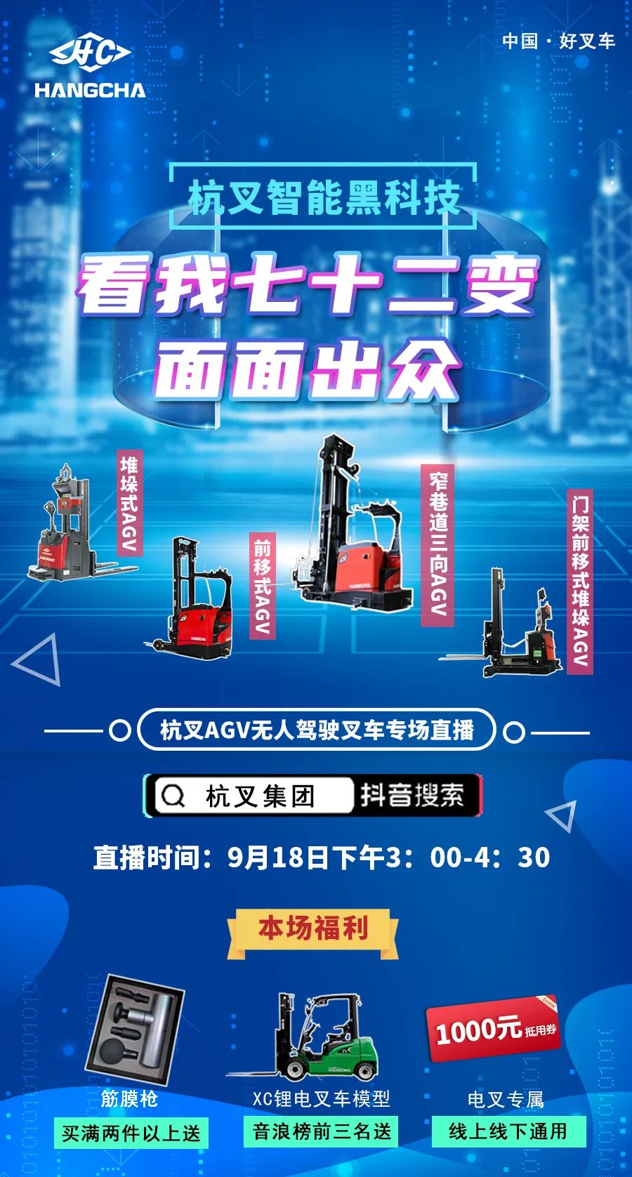 直播预告|杭叉无人驾驶AGV还有这些隐藏车型?看直播间它们如何各展身手!