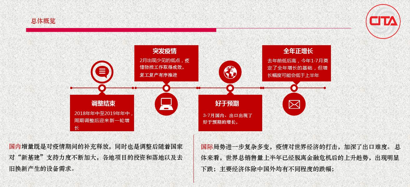 CITA秘书长张洁女士在CITA七届四次会员代表大会暨2020年年会上做《2020年1-7月工业车辆市场概况及行业“十四五”规划》的报告:一、国内外工业车辆行业市场情况2...