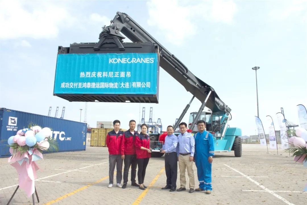 今天上午,科尼正面吊正式交付鸿泰捷运国际物流(大连)有限公司(以下称鸿泰捷运),交付现场隆重且充满仪式感。该正面吊是鸿泰捷运自发展集装箱仓储业务以来进购的首台正面吊,她将服务于16000平米新堆场。