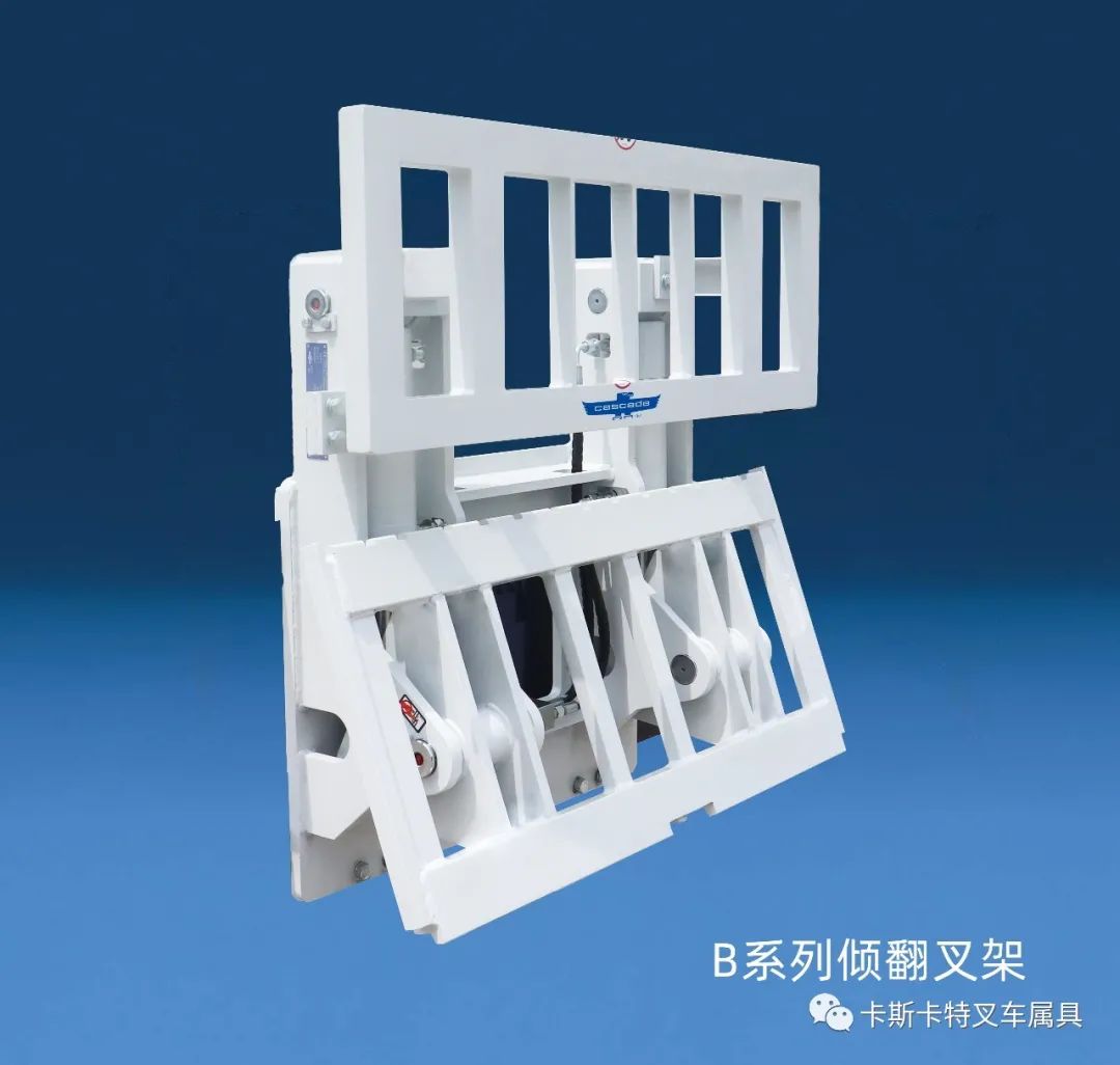 结合货叉、铲斗或其它属具产品,卡斯卡特B系列倾翻叉架可实现便捷的货物倾倒作业,适应在港口、仓储、农业生产、畜牧业、渔业、木材加工、采矿和工厂等工况的应用。