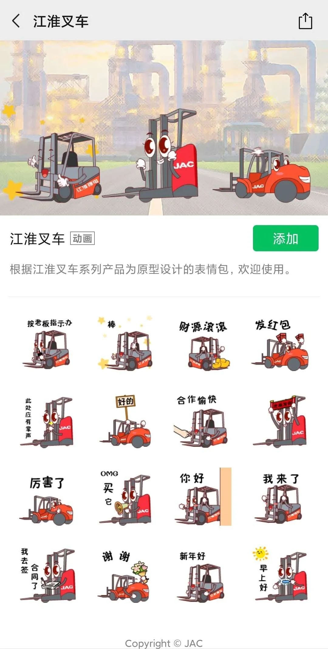 点击“表情”搜索“江淮叉车”,看到“江淮叉车”