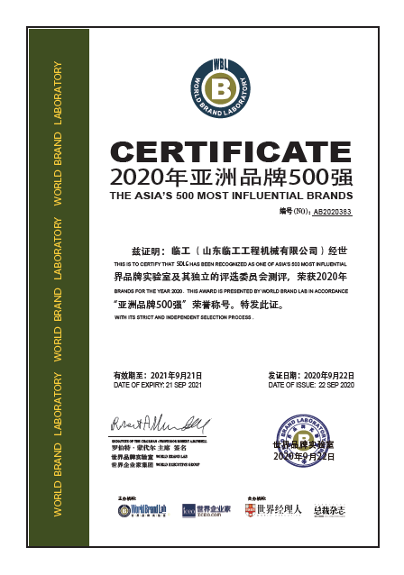 9月22日,由世界品牌实验室和世界企业家集团共同编制和发布的2020年《亚洲品牌500强》排行榜揭晓。临工凭借强大的品牌实力连续七年荣登榜单,继续向着“国际一流、世界知名”的目标大步迈进。