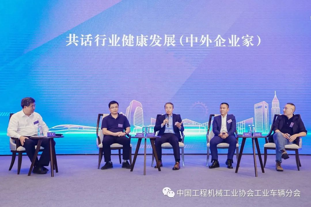 随后,是由分会唐超会长主持的以“共话行业健康发展”为主题的对话环节。邀请了浙江中力机械股份有限公司总经理何金辉、宁波如意股份有限公司技术副总冯振礼、永恒力叉车(上海)有限公司中国区总经理白大平以及凯傲宝骊(江苏)叉车有限公司总裁朱旭东为作为嘉宾参与对话。嘉宾们就当前行业发展面对的问题、机遇与挑战畅所欲言,最后唐超会长进行了总结发言,并介绍了物流行业“十四五”规划中的部分内容。